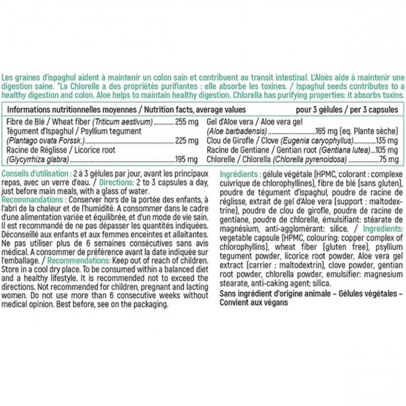 - Сочетание пшеничных отрубей, псиллиума, гвоздики, горичавки, солодки, алоэ вера и хлореллы не только улучшает пищеварение, но и способствует детоксикации организма, укреплению иммунитета и общему оздоровлению