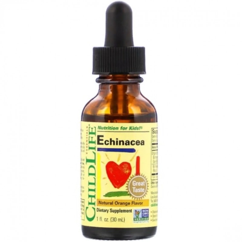 Эхинацея ChildLife® производится специально для младенцев и детей - органически выращивается и ароматизируется натуральным эфирным маслом сладкого апельсина.