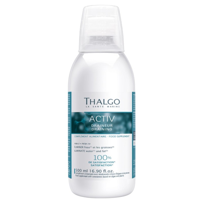 Актив Дренаж Thalgo Activ Draining легко принимать, ведь крышка средства является мерной чашкой. Ей легко отмерять нужное количество жидкости для ежедневного использования. Сам продукт жидкий, но рекомендуется его разводить в стакане воды.