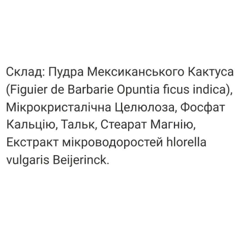 Продукт имеет мгновенное действие, потому что содержит клинически протестированный экстракт мексиканского кактуса NOPAL NeOpuntia® и экстракт микроводорослей Хлорелла. Сочетание этих компонентов улавливает пищевые жиры и сахар, предупреждает их усвоения, и выводит из организма без накопления. Поэтому если вы съели, например, лишний кусочек торта, выпив 3 капсулы через 15 минут, весь сахар и жир покинет ваш организм не усвоившись. Именно поэтому эта биологически активная добавка идеально подходит для тех, кто считает калории и пытается вернуться в форму.