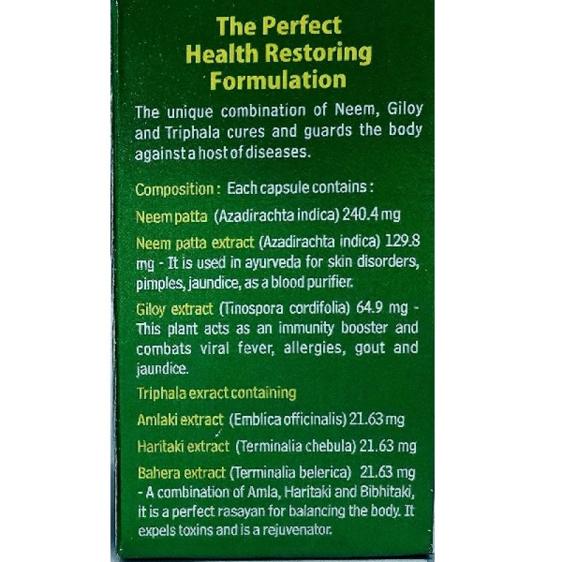 Укрепляет иммунитет: Ним, Гилой и Трифала - их смесь является одним из богатейших источников противомикробных агентов, действующих против грибков, бактерий и вирусов. Капсулы Ним Гард помогают контролировать общую лихорадку, инфекции, кашель и простуду. Это может привести к тому, что иммунная система станет более активной. Короче говоря, эти капсулы действуют как мощное антибактериальное и противовирусное средство, а также являются необычайным иммуностимулятором.
