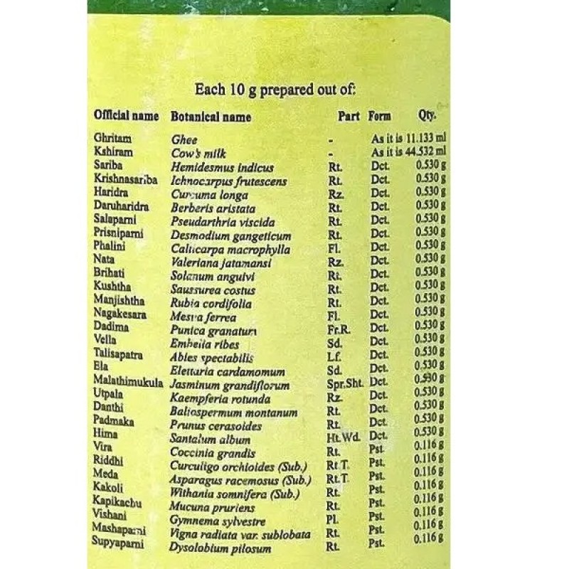 Mahakalyanaka Ghritam Kottakkal (Махакальянака Гритам) – это традиционный аюрведический препарат, используемый для глубокой детоксикации организма, оздоровления репродуктивной системы как у женщин, так и мужчин. К тому же стабилизирует психическое состояние. Его положительный эффект достигается путем сочетания целебного молочного продукта — топленого масла (Гхи) и лекарственных трав. Гхи легко усваивается организмом, восстанавливает его, и служит своеобразным “проводником” для доставки все полезных и питательных веществ в органам и тканям тела. Оно значительно приумножает силу растительных ингредиентов средства.