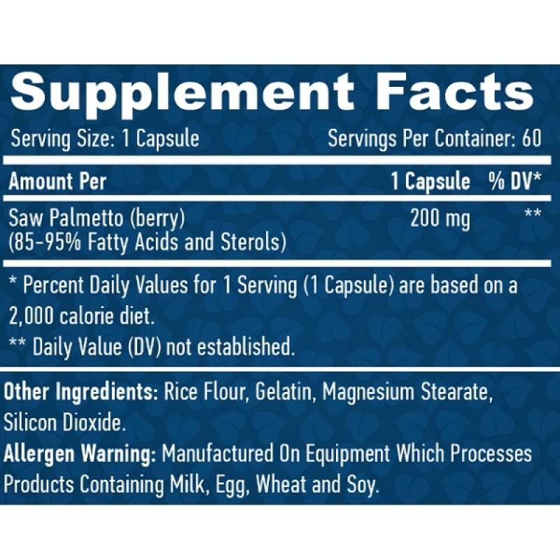 Saw Palmetto от популярного американского производителя Haya Labs – натуральная биоактивная добавка на основе экстракта Со Пальметто или, иначе, плодов южноазиатской пальмы сереноа. Это растение издавна использовалось в целительстве и народной медицине, в основном, для лечения проблем с мужской мочеполовой системой, и не только. В нем содержатся фитостеролы, флавоноиды, жирные кислоты, эфирные масла, танин, каротин, а также внушительный перечень минералов.