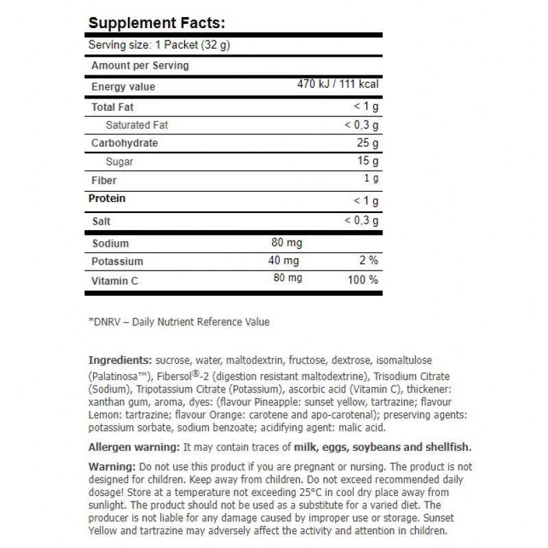 - высококачественные углеводы, т. е. палатиноза, мальтодекстрин и декстроза - гарантируют постоянную инъекцию энергии, до 4 часов,