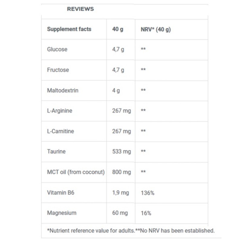 - базируется на высококачественных углеводах - глюкозе, фруктозе и мальтодекстрине;