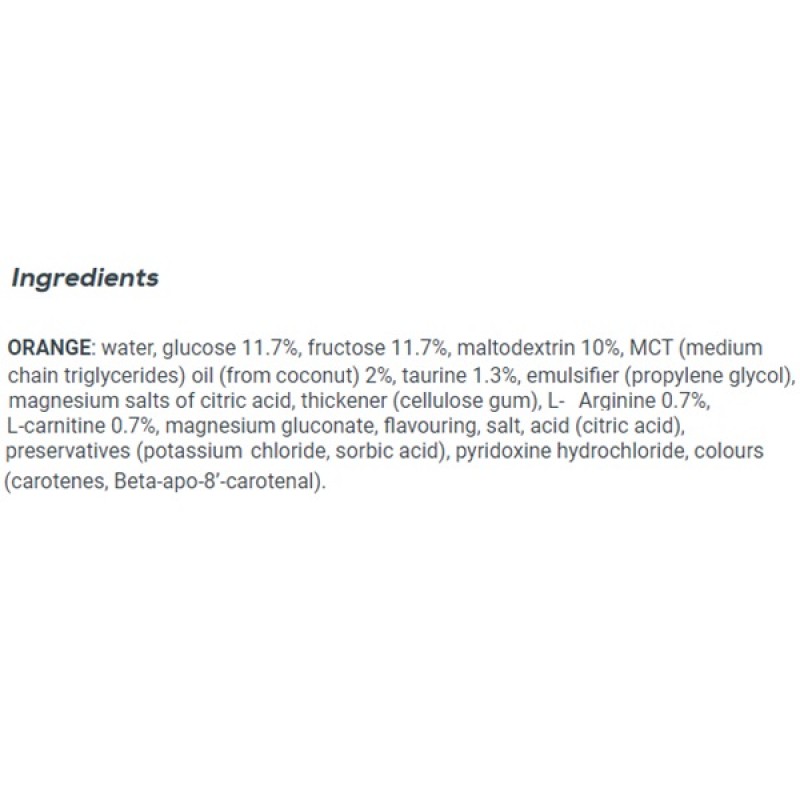 BioTech USA Energy Gel PRO предназначен для спортсменов и культуристов. Благодаря содержанию макро Tricarb и MCT (триглицериды со средней цепью) он зарядит вас энергией во время изнурительных тренировок. Tricarb является трехкомпонентной смесью углеводов, которая будут обеспечивать немедленное поступление энергии в организм, в то время как форма МСТ жирных кислот будет в качестве источника долгосрочной мощности. Energy Gel Pro помимо таурина и L-карнитина, содержит L-аргинин, витамин B6, магний и натрий.Состав: очищенная вода, комплекс TriCARB 33.3% (глюкоза 11.67%, фруктоза 11.67%, мальтодекстрин 10%), МСТ масла (из кокосового масла), таурин, L-карнитина L-тартрат, L-аргинин, загуститель (карбоксиметилцеллюлоза натриевая соль), магния глюконат, магния цитрат, натрия хлорид, калия хлорид, кислоты (лимонная кислота), консервант (сорбиновая кислота), пиридоксина гидрохлорид, ароматизатор.