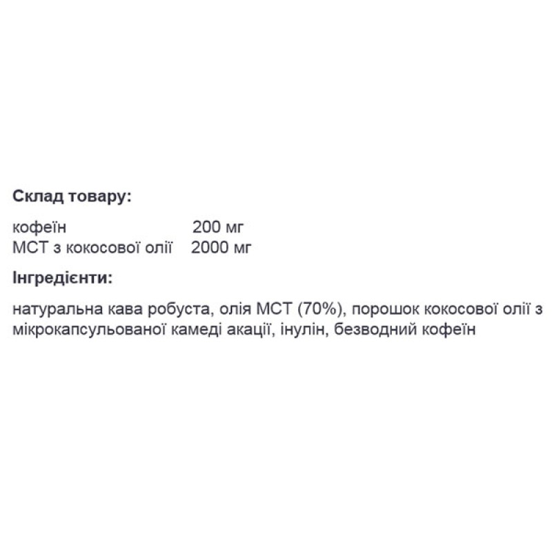 - Кофеин и MCT-масло: мощное сочетание кофеина и среднецепочечных триглицеридов (MCT) обеспечивает быстрый приток энергии и улучшает когнитивные функции.