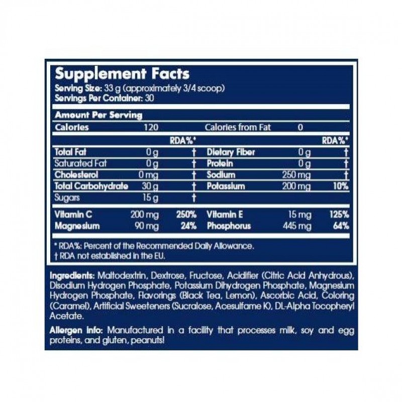 Углеводы и минеральные вещества дополнены антиоксидантами, витаминами С и Е, которые при физических нагрузках способствуют лучшей борьбе организма со свободными радикалами.