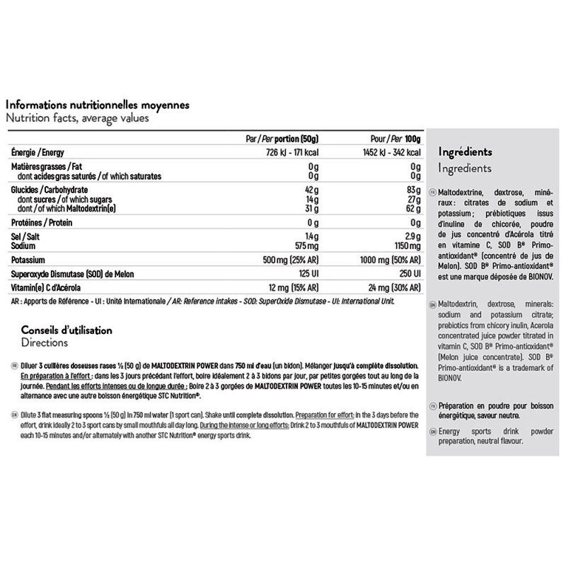 STC MALTO DEXTRIN POWER специально разработан для обеспечения энергией в виде углеводов с пролонгированным усвоением (мальтодекстрины) и электролитов в правильных пропорциях.