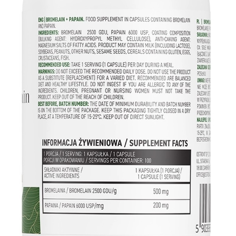 OstroVit BROMELAIN+PAPAIN VEGE представляет собой инновационное решение для поддержания вашего здоровья и благополучия. Сочетание мощных ферментов бромелаина и папаина в одном продукте обеспечивает широкий спектр преимуществ, включая поддержку пищеварения, улучшение усвоения питательных веществ, противовоспалительное действие, укрепление иммунитета и многое другое. Сделайте шаг к лучшему здоровью с OstroVit BROMELAIN+PAPAIN VEGE уже сегодня!