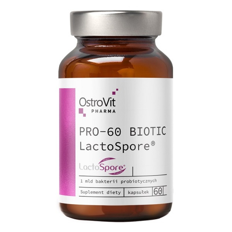 Пищевая добавка OstroVit Pharma - PRO-60 Biotic LactoSpore в капсулах, содержащая живые культуры пробиотических бактерий – Bacillus coagulans MTCC 5856 LactoSpore, запатентованная Sabinsa. Пробиотик позволяет поддерживать сбалансированную микрофлору кишечника, его эффективность подтверждена клиническими испытаниями. Штаммы пробиотических бактерий способствуют смягчению симптомов, возникающих из-за неправильной микрофлоры кишечника.