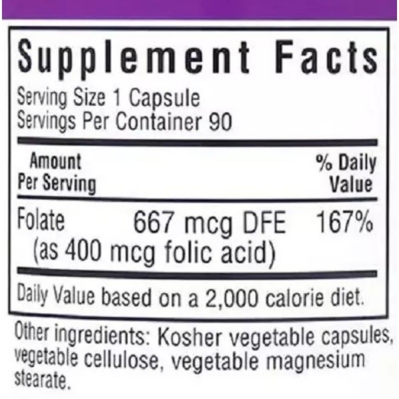 Bluebonnet Folic Acid 400 mcg также известная как витамин В9, крайне необходима для правильного функционирования иммунной и кровеносной систем.