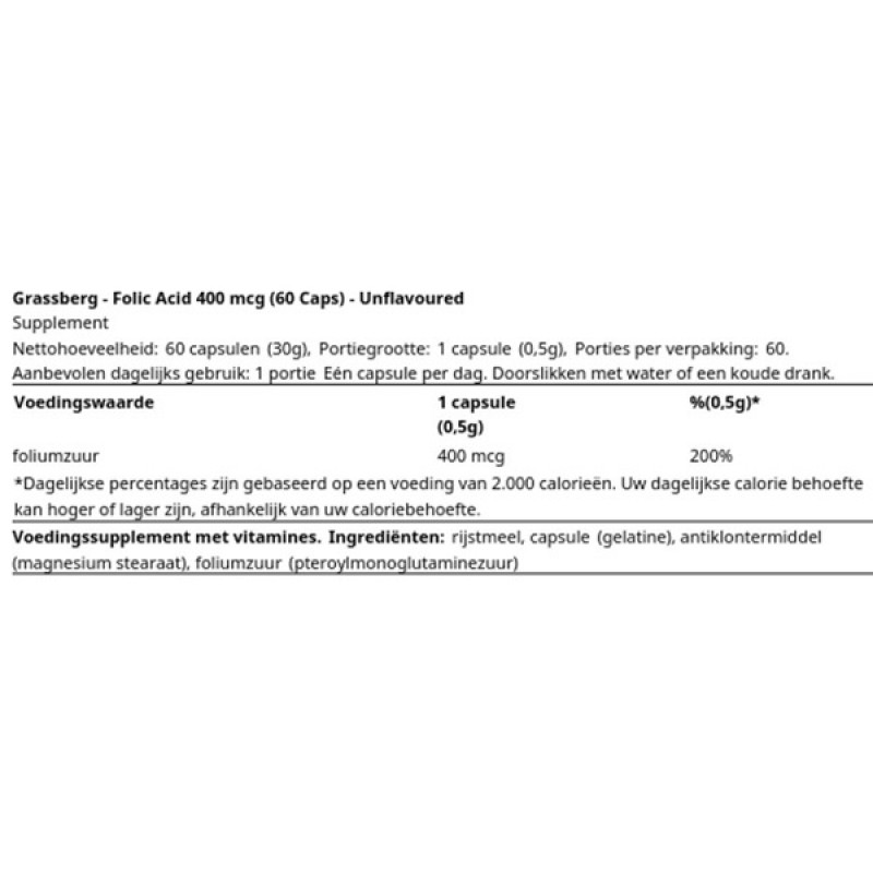 Фолиевая кислота (Folic acid) 400 мкг, Grassberg – витаминная пищевая добавка для профилактики и лечения дефицита фолиевой кислоты.
