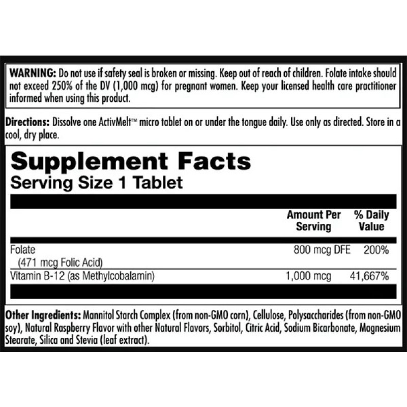 Основные преимущества Витамины КЕЛ (KAL) Фолиевая кислота/Метил В-12 (Метилкобаламин):