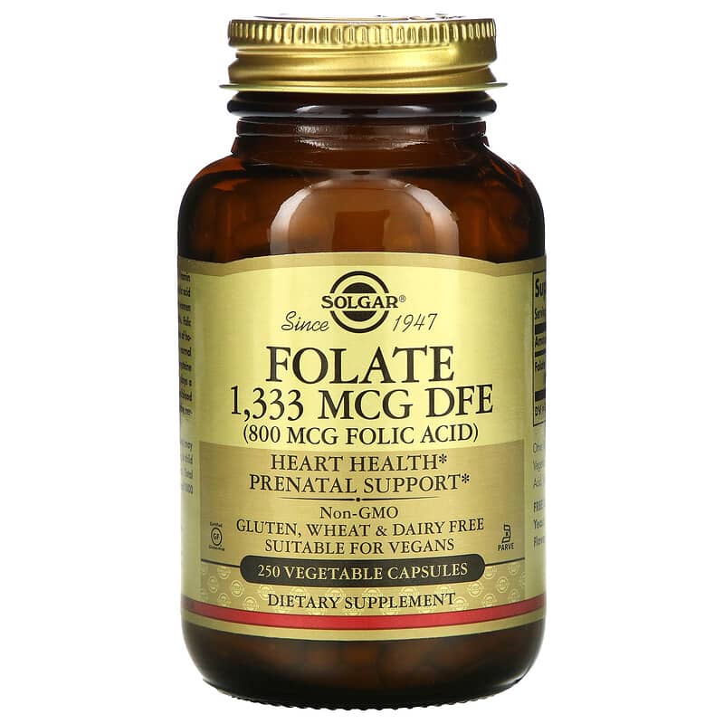 Фолиевая кислота в капсулах (Folic acid) – это растворимый в воде витамин В, являющийся частью комплекса группы В. Фолиевая кислота полезна для женщин и для поддержания здоровья сердца. Фолиевая кислота способствует поддержанию здорового уровня гомоцистеина в метионине. При этом, она играет важную роль в функционировании эритроцитов и способствует поддержанию здоровья нервной системы.