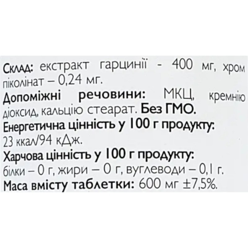 - Экстракт гарцинии: основной активный ингредиент, который содержит гидроксилимонную кислоту (HCA), которая помогает контролировать аппетит и уменьшать жировые запасы в организме.