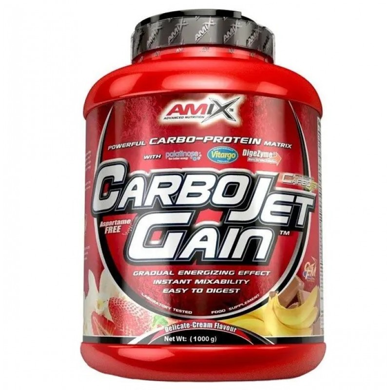 CarboJet Gain Amix Nutrition (Карбо Джет Гейн Амикс Нутришн) - это специально разработанный гейнер для набора веса с высоким содержанием протеина. Amix™ CarboJet™ Gain смесь с собственными углеводами Карбоджет™ состоит из Витарго® (со сверхвысоким молекулярным весом углеводов), Палатинозы® (низкий гликемический углевод с длительным энергоснабжением) и высококачественного мальтодекстрина, фруктозы и декстрозы.Протеиновая составляющая смеси состоит из CFM® изолята сывороточного протеина, ультрафильтрованного концентрата сывороточного протеина, нежирной сыворотки и говяжьего протеина (аминокислоты, полученные из говяжьего белка).