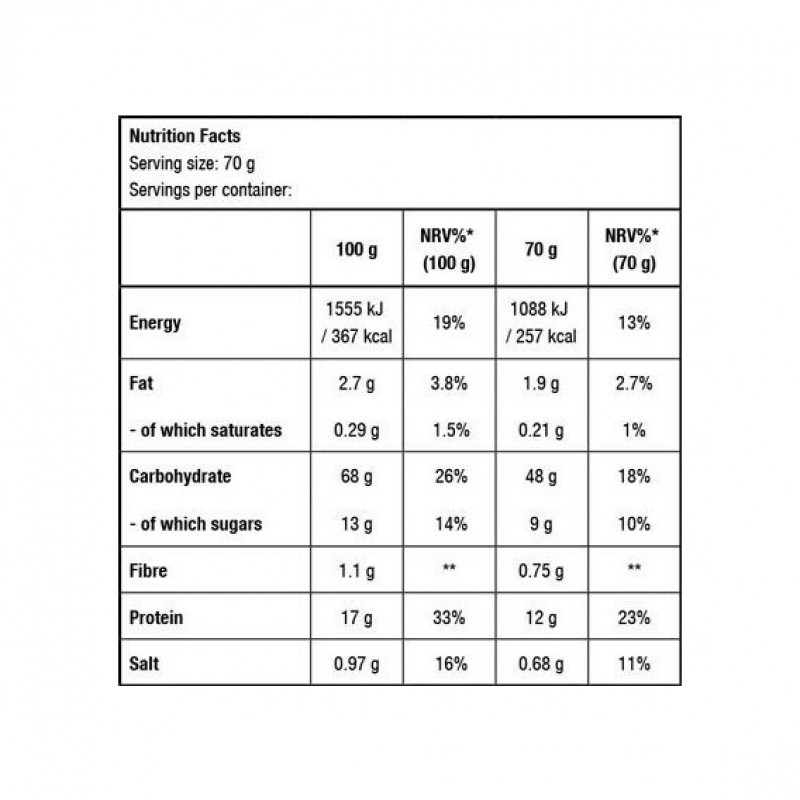 Ингридиенты: PentaCarb Матрица 67% мальтодекстрин, декстроза, родной и кукурузного, фруктоза, инулин (из цикория), Мега Матрица белка 17% (изолят сывороточного протеина, гидролизат сывороточного белка, белок молочной сыворотки концентрат, сывороточные пептиды, концентрат молочного белка, изолят молочного белка, мицеллярный казеин, казеинат кальция, гидролизат говяжего белка, яичный альбумин, изолят рисового белка), какао-порошок, ароматизаторы, МСТ Матрица (кокосовое масло, пальмовое масло), наполнитель (карбокси- метилцеллюлоза), эмульгатор (соевый лецитин), соль, подсластитель (сукралоза).