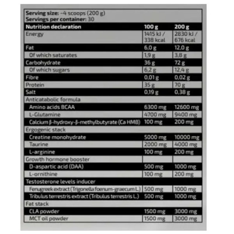 Кроме впечатляющего количества белка на порцию вы еще можете встретить в составе тестобустиры на натуральной основе с трибулуса, DAA, а также экстракта пожитника, что просто заставит ваши мышцы не стоять на месте и постепенно расти. Чтобы не набрать лишние килограммы производителем было добавлено CLA и MST, которые помогут предотвратить жировым отложениям. Поражены? - Однако, это еще не все, на порцию приходится 5 г креатина и 2 г таурина, что способствует приросту не только массы, но и силы и поддержит работу нервной системы.