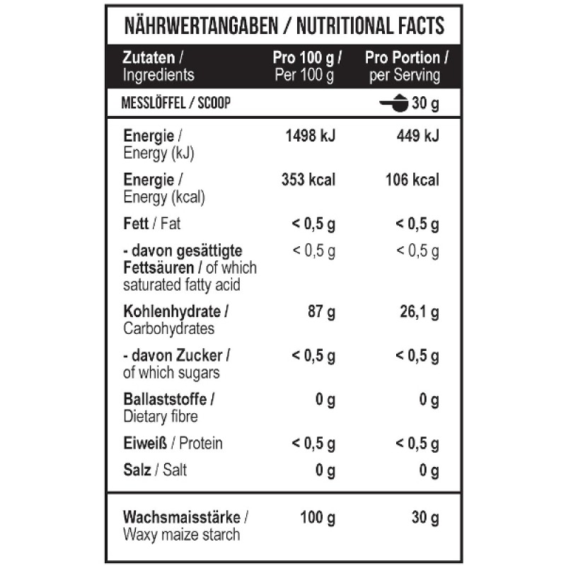 MST® WAXY MAIZE Zero sugar Углеводы из восковой кукурузы БЕЗ САХАРА — это прекрасный источник качественного энергетического топлива для мышц и организма в целом. Продукт основан на углеводах восковой кукурузы и не содержит сахара, а его употребление не вызывает дискомфорта при пищеварении. Восковая кукуруза является уникальным углеводом, потому что у нее быстрее скорость поглощения, чем у мальтодекстрина и декстрозы, попадает сразу в кишечник для немедленного поглощения мышцами.