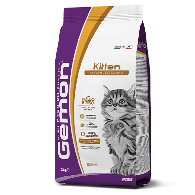 Gemon Cat Kitten сухой полнорационный корм с мясом курицы и рисом для котят в возрасте от 1 до 12 месяцев. Содержит простые легкоусвояемые ингредиенты, обеспечивающие отличное физическое состояние, здоровый рост и правильное развитие Вашего нового члена семьи.