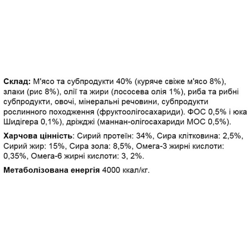 - Это высокоэнергетический, богатый белками рацион, полностью удовлетворяющий растущий организм любимца в необходимых веществах.