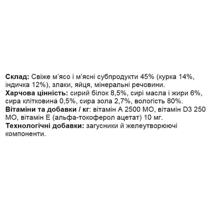 - полноценный, сбалансированный влажный корм, специально разработанный для ежедневного кормления.
