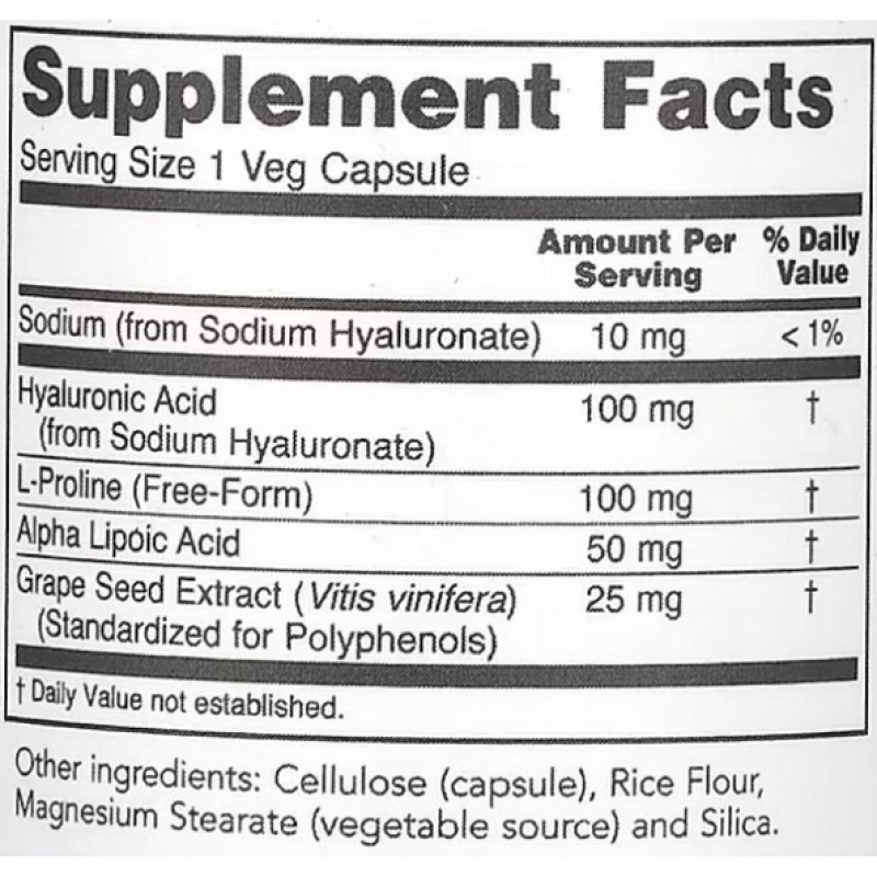 Гиалуроновая кислота (Hyaluronic Acid), Protocol for Life Balance - это встречающийся в природе гликозаминогликан, который содержится в каждой ткани организма. ГК особенно концентрируется в глазах, коже и синовиальной жидкости, где она действует как один из основных смазывающих компонентов организма. ГК также играет важную роль в формировании хрящей и в поддержании здоровья кожи.