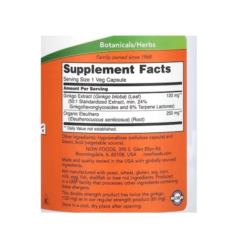 Гинкго Билоба NOW Foods Ginkgo Biloba Double Strength 120 mg 200 Veg Caps