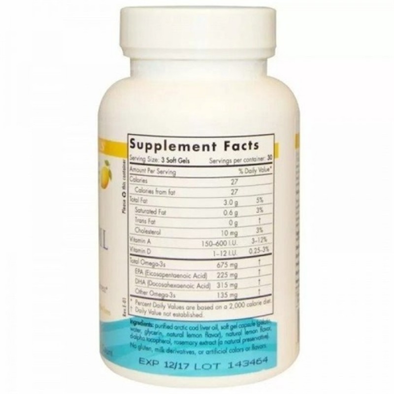 Масло печени арктической трески (Arctic cod liver oil) - производится из печени свежей трески, которую ловят у берегов Норвегии. Жир производится без применения химических средств и с добавлением витамина Е. Для сохранения свежести рыбьего жира, воздух внутри упаковки заменяется азотом. Приятный легкий лимонный вкус и высокое содержание ЭПК и ДГК характерно для этого качественного и натурального рыбьего жира.