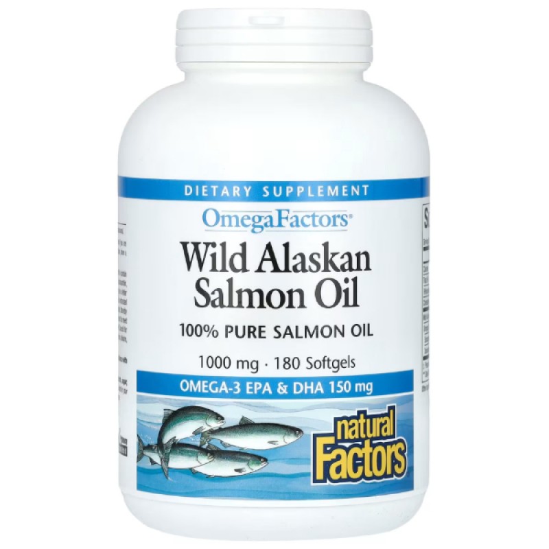 Wild Alaskan Salmon Oil, Natural Factors - это натуральный, экологически чистый, свежий и неразбавленный с другими маслами жир дикого аляскинского лосося. Дикий лосось — более здоровый выбор, чем лосось, выращенный на фермах, который может содержать высокие концентрации антибиотиков, полихлордифенилов и диоксинов. Продукт из дикого лосося - это более экологичный выбор. Жир дикого лосося является источником астаксантина, жирных кислот омега-3, и имеет естественное соотношение ЭПК и ДГК.