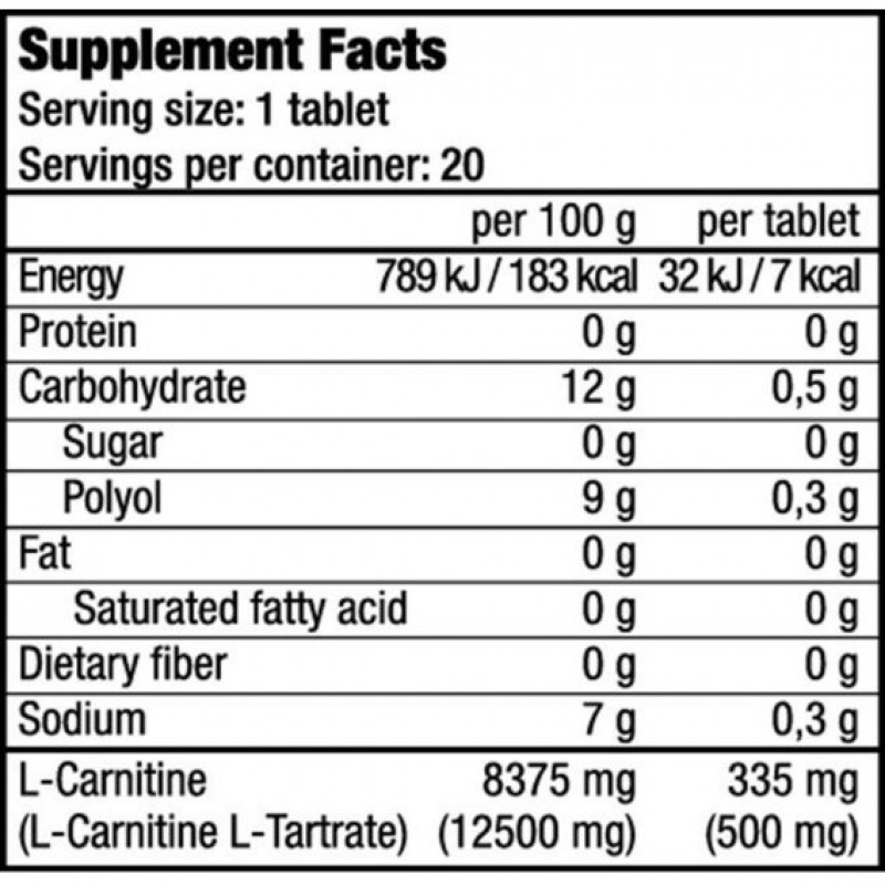 Необходимо растворить одну таблетку L-carnitine в 200 мл воды и выпить за 20 минут перед тренировкой.