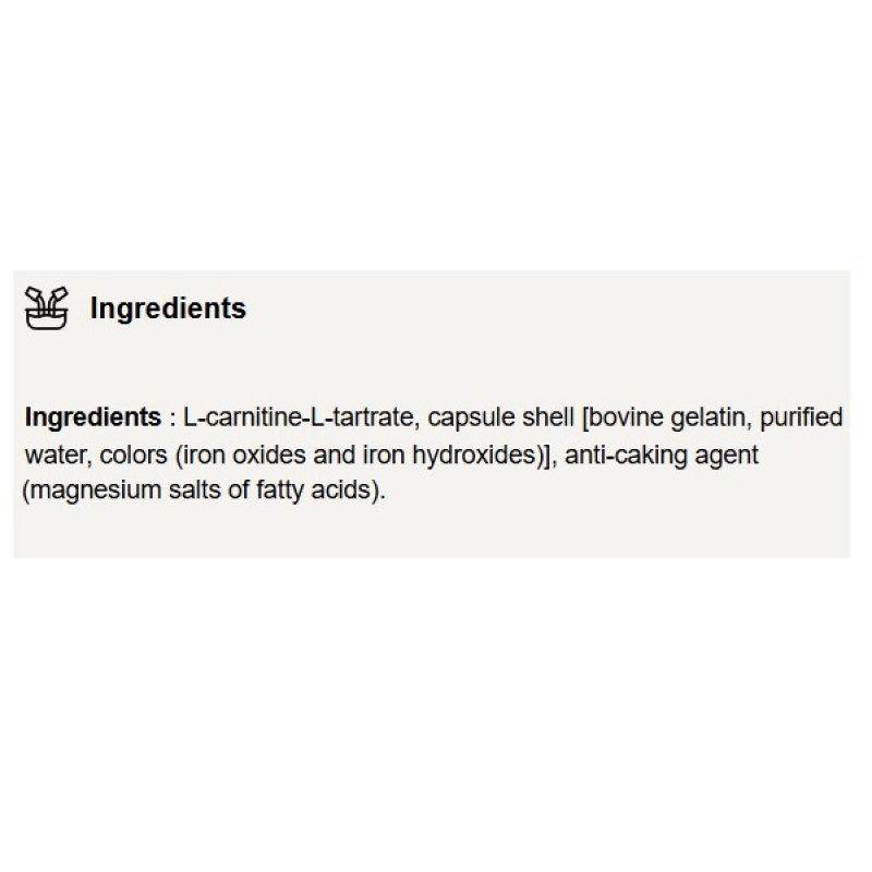 L-карнитин, L-тартрат, пищевой желатин, стеарат магния, диоксид титана.