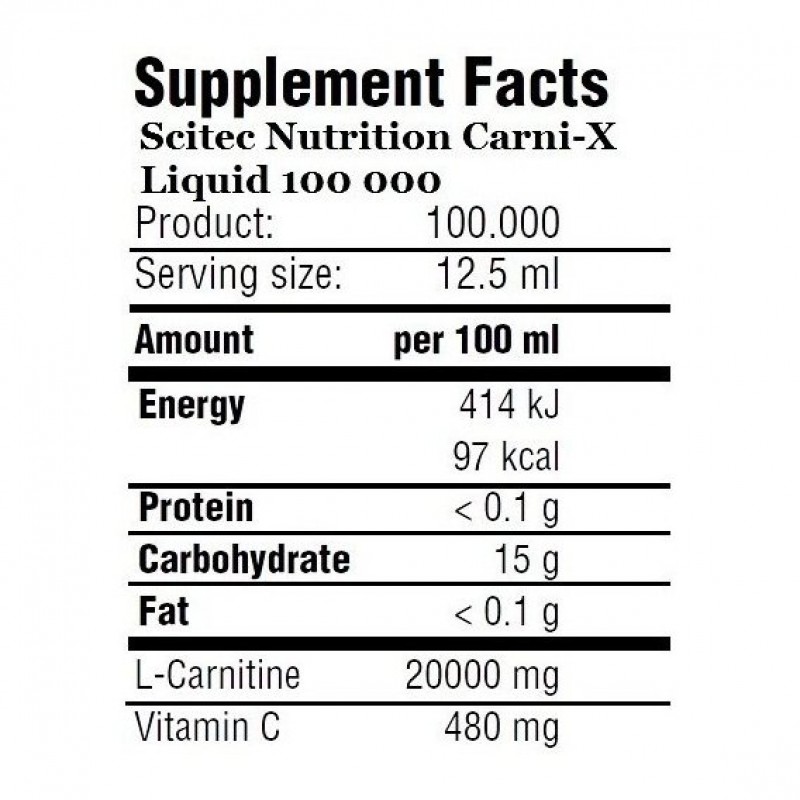Активные компоненты Scitec Nutrition Carni X Liquid 100000: