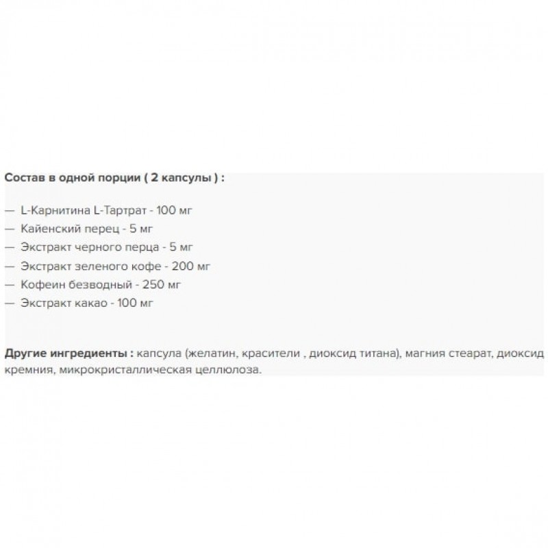 Это жиросжигатель комплексного действия, который помогает организму целенаправленно бороться с подкожными жировыми отложениями. Он действует сразу по нескольким алгоритмам, а именно повышение скорости метаболизма и температуры тела. Способствует увеличению продолжительности и интенсивности тренировок, что способствует утилизации жирных кислот в качестве энергии.