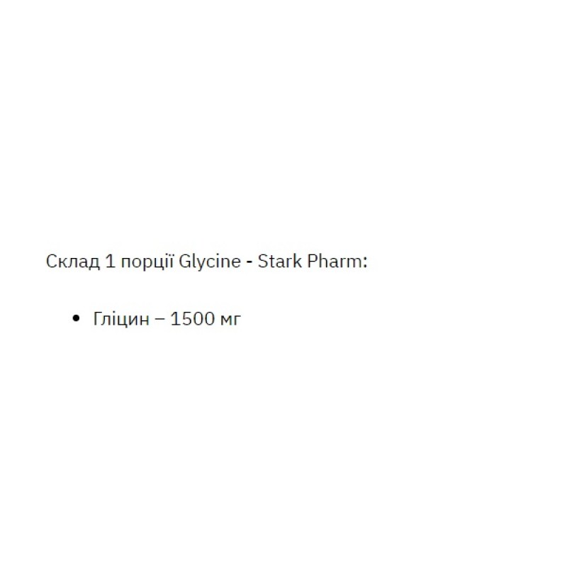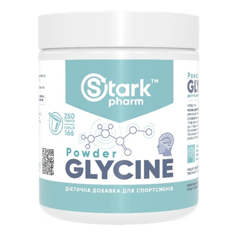 Пищевая добавка Stark Glycine - Stark Pharm содержит глицин, является нейромедиаторной аминокислотой, проявляющей параллельное дуалистическое действие. Глициновые рецепторы имеются во многих участках головного мозга и спинного мозга. Связываясь с рецепторами (кодируемые генами GLRA1, GLRA2, GLRA3 и GLRB), глицин вызывает «тормозящее» воздействие на нейроны, уменьшает выделение из нейронов «стимулирующих» аминокислот, таких, как глутаминовая кислота, и повышает выделение ГАМК.