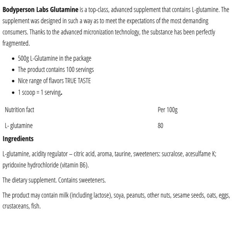 Глютамин для спорта Bodyperson Labs Glutamine 500 g /100 servings/ Orange