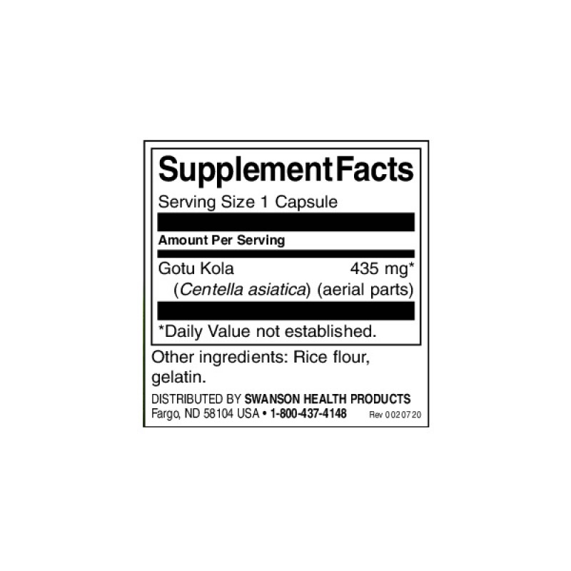 Готу кола (Anson Gotu Kola) от Swanson способствует снабжению мозга кислородом, стимулируя его функции, благодаря чему улучшается память, концентрация внимания и сон. Благотворное внимание на центральную нервную систему положительно сказывается на всем организме. Кроме того, Готу кола известна и своим омолаживающим действием. Готу кола показана при ухудшении памяти, для улучшения кровообращения, в том числе и периферического, при неврастении, атеросклерозе, венозной недостаточности, варикозном расширении вен, ревматизме, заболеваниях кожного покрова, инфекционных заболеваниях мочевой системы, преждевременном старении.