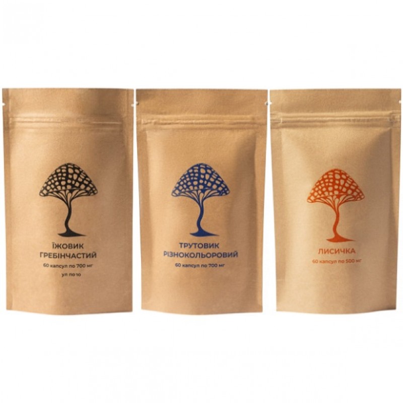 Набор «Здоровый ребенок» содержит 2 упаковки Ежовика гребенчатого, 2 упаковки Трутовика разноцветного и 1 упаковку Лисички, помогая комплексно улучшать физическое и ментальное здоровье и способствовать качественной эволюции сознания.