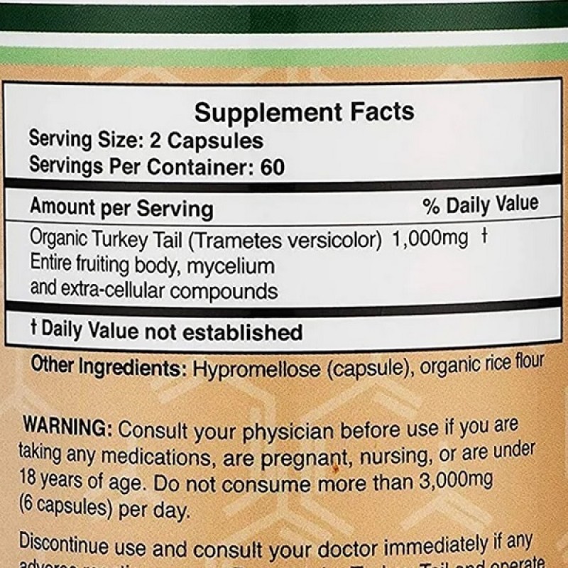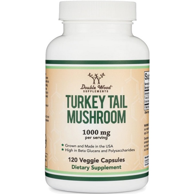 Double Wood Supplements Turkey Tail Mushroom 1000 mg - это органический грибной порошок, содержащий широкий спектр активных соединений из хвоста индейки, которые, как известно, обладают его благотворным действием.