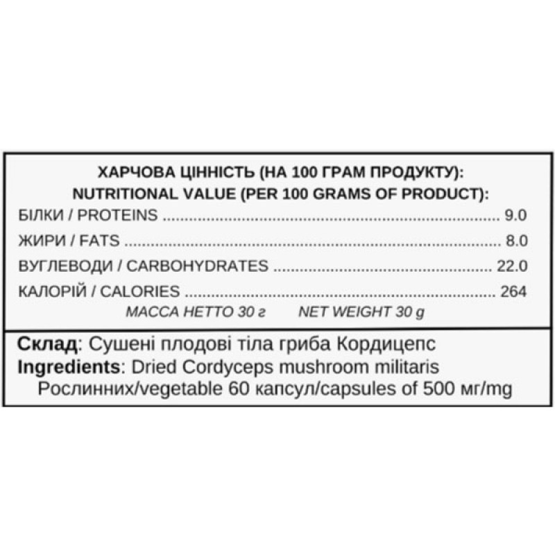 Кордицепс содержит активные компоненты, такие как кордицепин и полисахариды, способствующие повышению уровня энергии, улучшению физической выносливости и поддержанию иммунной системы. Кордицепин обладает антиоксидантными свойствами, помогающими защищать клетки от оксидативного стресса, а полисахариды стимулируют активность иммунных клеток, что помогает повысить общий иммунный статус.