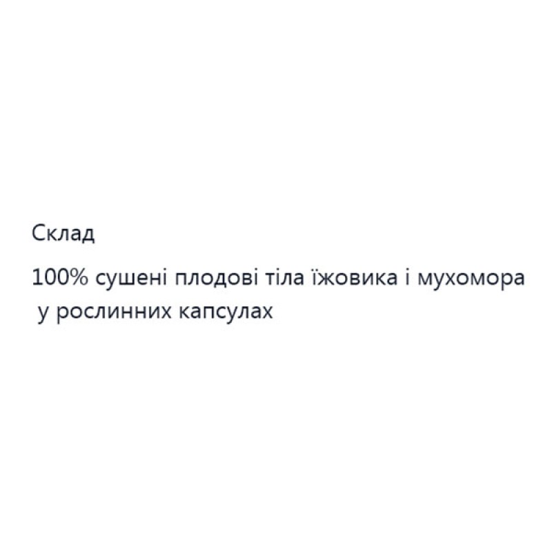 Ежик гребенчатый содержит активные компоненты, стимулирующие выработку фактора роста нервов (NGF), который способствует восстановлению и росту нервных клеток, что улучшает когнитивные функции. Мухомор действует как адаптоген, помогая снизить уровень стресса и тревожности, а также улучшая настроение. Комбинация грибов обеспечивает нейропротекцию благодаря антиоксидантам, защищающим мозговые клетки от повреждений и воспаления.