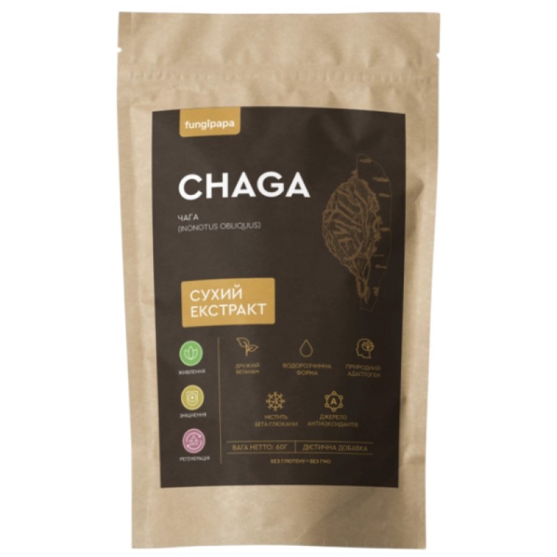 Чага Fungipapa сухой экстракт Inonotus obliquus изготовлен по технологии двойной экстракции, включающей водную и спиртовую методы. Водная экстракция позволяет выделить водорастворимые активные вещества, в частности бета-глюканы и полисахариды, тогда как спиртовая экстракция эффективно экстрагирует спирторастворимые компоненты, такие как трипертероиды и фенольные соединения.