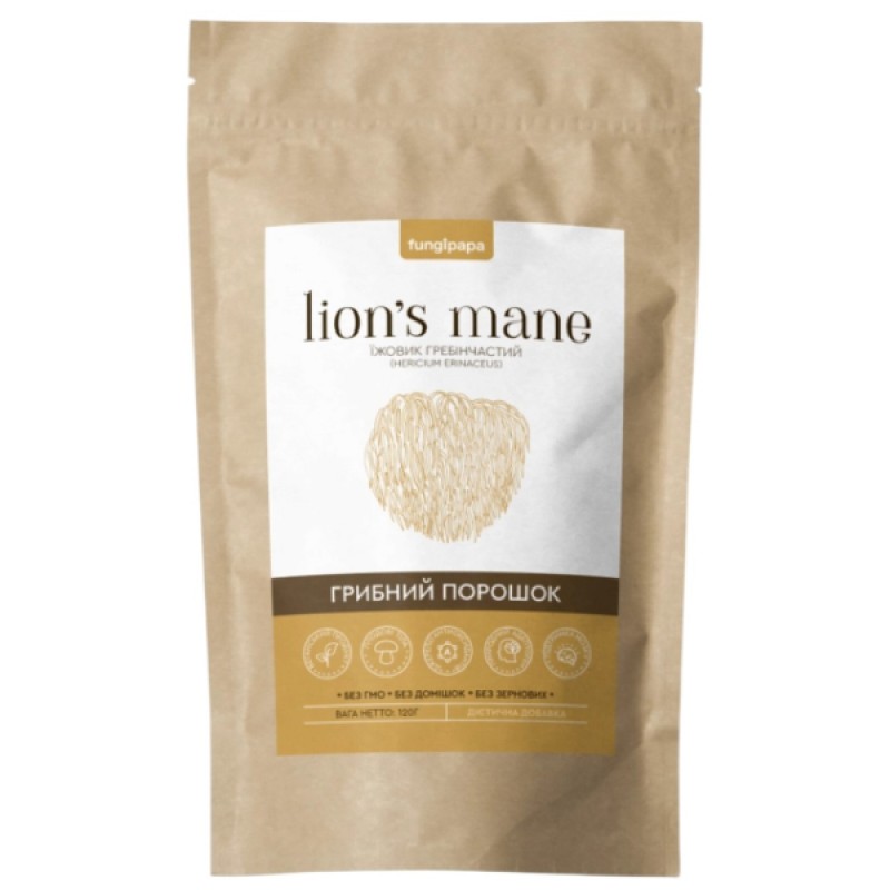 Грибной комплекс Fungipapa Ежовик гребенчатый (Hericium erinaceus) - грибной порошок 120 г /60 порций/