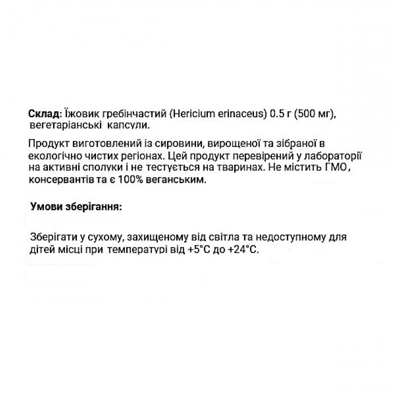 Продукт может быть использован как источник биологически активных соединений растительного происхождения. Диетическая добавка содержит уникальные биоактивные вещества, которые стимулируют регенерацию нервных клеток и улучшают когнитивные функции, а также способствуют выработке нервного ростового фактора, что особенно полезно при нейродегенеративных состояниях. Высокое содержание антиоксидантов в Ежовике гребенчатом помогает защитить клетки от окислительного стресса и свободных радикалов, что является одной из причин старения и развития хронических заболеваний. Экстракт Ежовика гребенчатого имеет потенциал ингибировать рост опухолевых клеток благодаря полисахаридам, которые могут вызвать апоптоз раковых клеток. Использование диетической добавки обладает способностью уменьшать уровень холестерина, что полезно для здоровья сердечно-сосудистой системы, а также помогает регулировать уровень сахара в крови. Ежовик гребенчатый обладает способностью поддерживать здоровье желудка и уменьшать воспаление в организме.