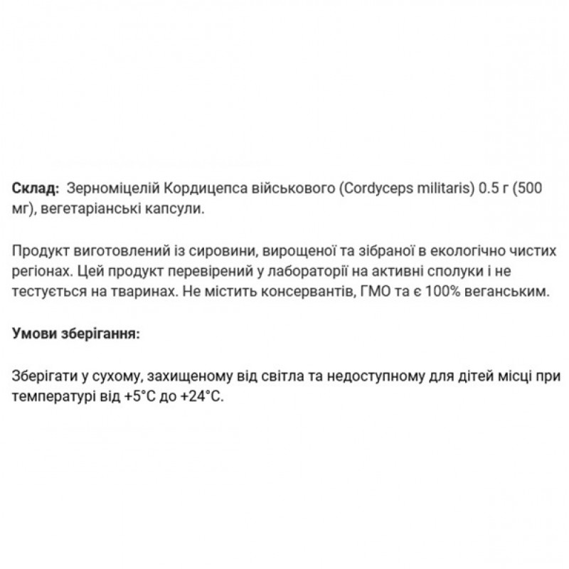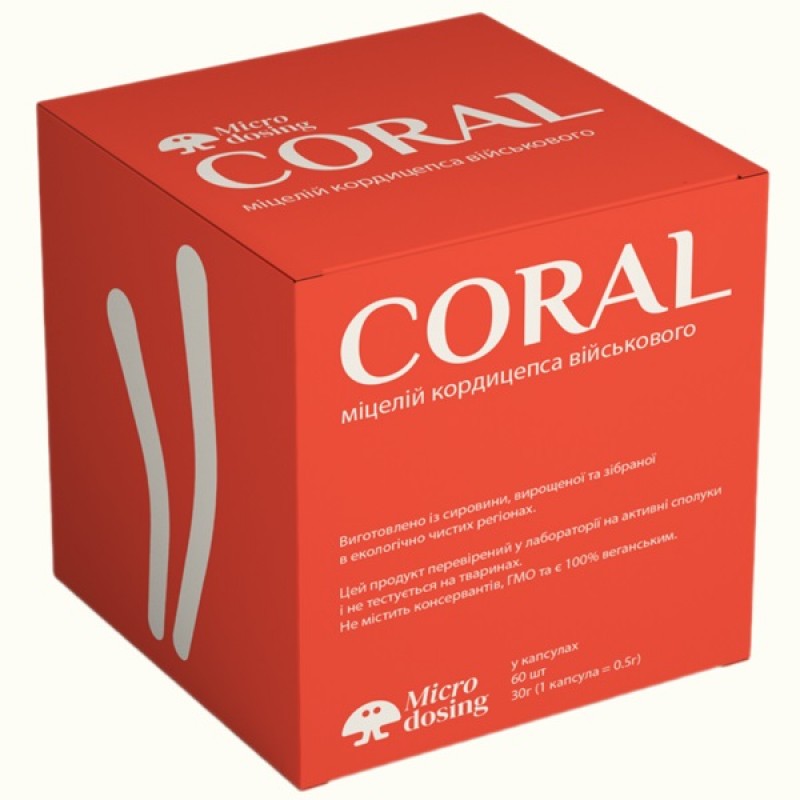 “Coral” Кордицепс военный, зерномицелий, 60 капсул по 0.5 г