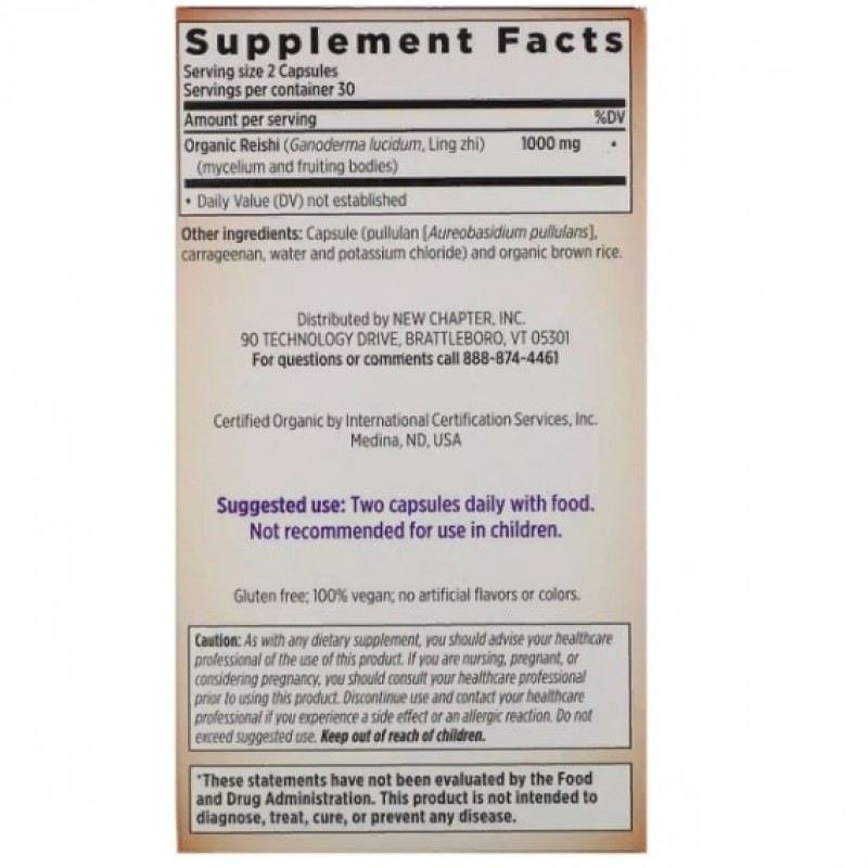 Благодаря своим лечебным свойствам, грибы рейши уже не одно тысячелетие используются в качстве лекарственных средств народами Азии. Главный секрет их популярноси заключается в том, что во время каждого этапа жизненного цикла гриб набирается важными питательными веществами и укрепляет свои защитные механизмы. New Chapter в своей добавке LifeShield используют только 90-дневные грибы (оптимальный возраст для гриба), которые наолнены полным спектром полезных свойств. Рейши замедляют процесс старения всех органов и систем, поддерживают стрессоустойчивость оргаизма - благодаря чему улучшается общее самочувствие и жизнеспособность.