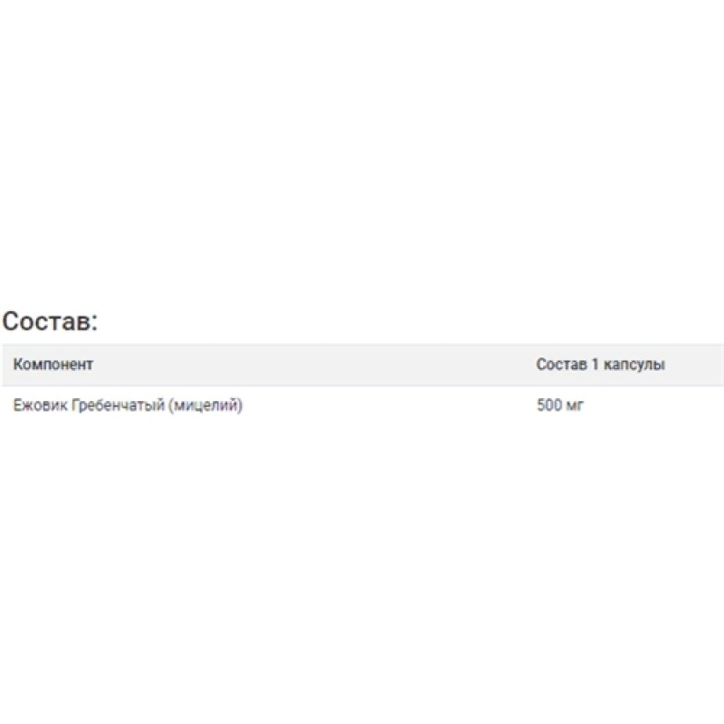 - Ежовик Гребенчатый (мицелий): 500 мг