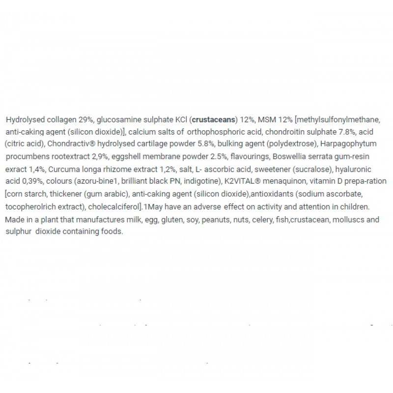 Ингредиенты включают трио глюкозамина, хондроитина и МСМ, а также витамины и минералы, участвующие в структурировании и функционировании костей и хрящей.**