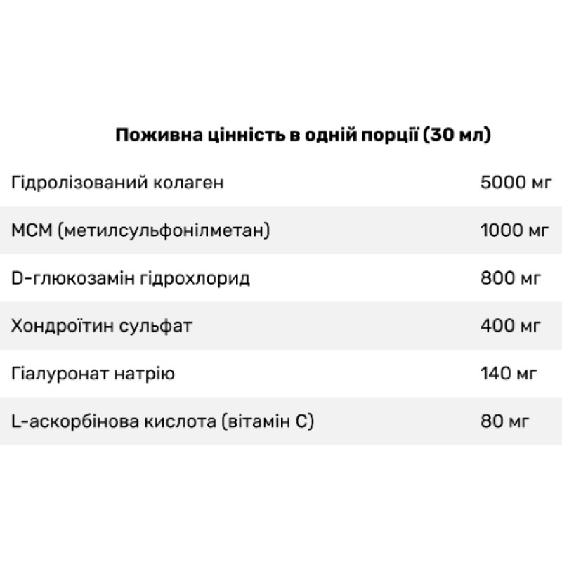 - Коллаген – основной компонент суставного хряща, способствует восстановлению и поддержанию структуры суставного хряща.